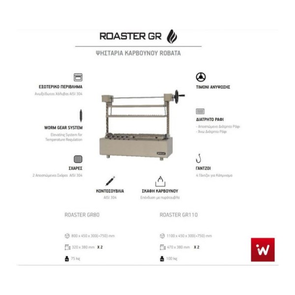 Επαγγελματική ψησταριά ROBATA κάρβουνου επιτραπέζια με ανύψωση VKN-ROASTER GR80 80X45X30(+75) εκ