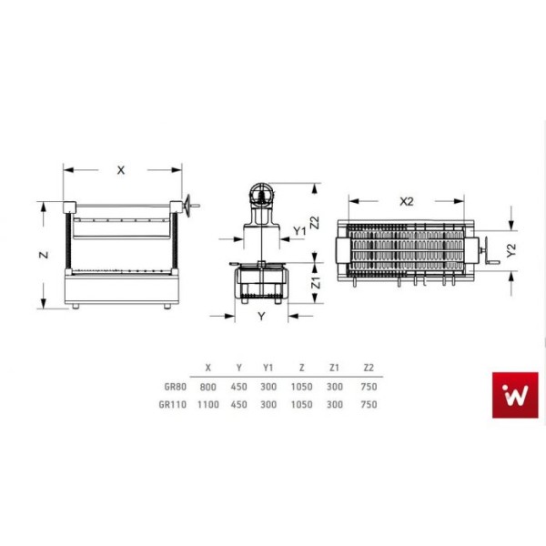Επαγγελματική ψησταριά ROBATA κάρβουνου επιτραπέζια με ανύψωση VKN-ROASTER GR80 800X45X30(+75) εκ