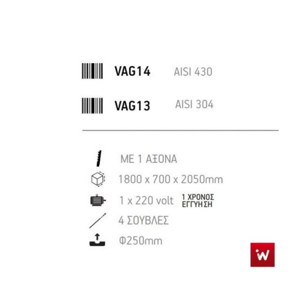 Επαγγελματική ψησταριά-σούβλα βαγονέτο με 4 σούβλες-1 ατέρμονα επιδαπέδια VKN-VAG14 180χ70χ205 εκ