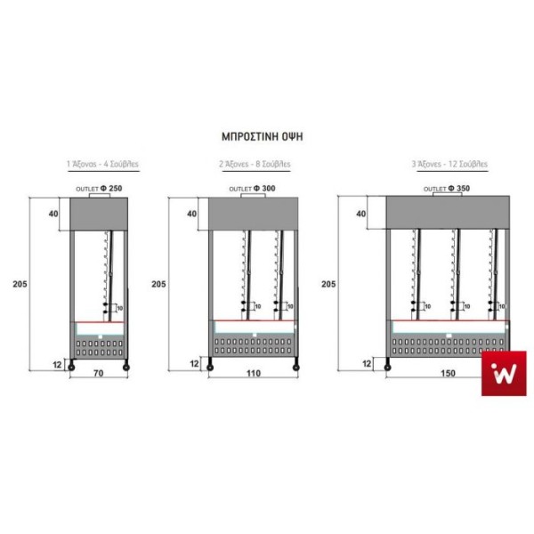 - ΣΟΥΒΛΕΣ Τέσσερις τετράγωνες επινικελωμένες σούβλες ανά άξονα (2 αρνί και 2 κοντοσούβλι)