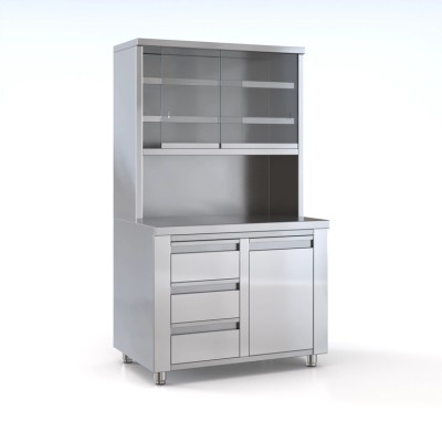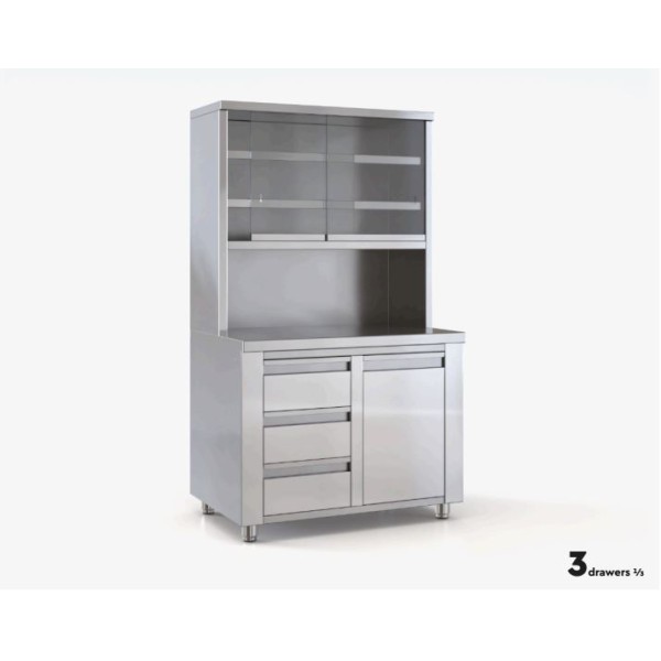 Επαγγελματικό ανοξείδωτο ερμάριο με ποτηριέρα, συρτάρια και αμπάρι 110X70X195 εκ ID-COUVERT110