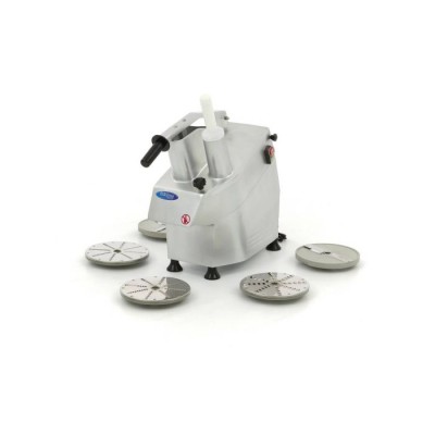 Ξεκινήστε με το πλύσιμο των λαχανικών και των φρούτων, εάν είναι απαραίτητο. Επιλέξτε προσεκτικά τον απαιτούμενο κόφτη και κλείστε το κάλυμμα. Συνδέστε τη συσκευή στην πρίζα και πατήστε το πράσινο κουμπί για να εκκινήσετε τον κόφτη λαχανικών. Σηκώστε τη λαβή και τοποθετήστε τα λαχανικά και τα φρούτα στη στρογγυλή είσοδο. Πιέστε τη λαβή προς τα κάτω και χρησιμοποιήστε τον ωθητήρα τροφίμων για να οδηγήσετε τα λαχανικά/φρούτα προς τους δίσκους κοπής. Το τιμόνι είναι εξοπλισμένο με διακόπτη ασφαλείας, ο διακόπτης αυτός θα σταματήσει αυτόματα τη μηχανή όταν μετακινήσετε το τιμόνι προς τα πάνω ή προς τα κάτω. Όταν τελειώσετε με την κοπή των τροφίμων, πατήστε το κόκκινο κουμπί για να απενεργοποιήσετε τη μηχανή. Με τους διαφορετικούς δίσκους κοπής που συνοδεύουν αυτό το μηχάνημα, μπορείτε να κόψετε σχεδόν οποιοδήποτε αντικείμενο ακριβώς όπως το χρειάζεστε. Αυτό το μηχάνημα περιλαμβάνει δίσκους κοπής των 2 και 4 mm, καθώς και τρεις τρίφτες των 3, 4 και 7 mm. Πρόσθετοι δίσκοι κοπής, όπως δίσκοι julienne και πλέγματα κοπής για την κοπή πατάτας, διατίθενται επίσης στην ιστοσελίδα μας (επιλέξτε τους δίσκους κοπής που ξεκινούν με VC450). Για την παρασκευή κύβων, το πλέγμα κοπής θα πρέπει να συνδυάζεται με έναν τυπικό δίσκο κοπής στο ίδιο μέγεθος. Το ίδιο ισχύει και για την κοπή τηγανητών πατατών με το δίσκο για τηγανητές πατάτες.