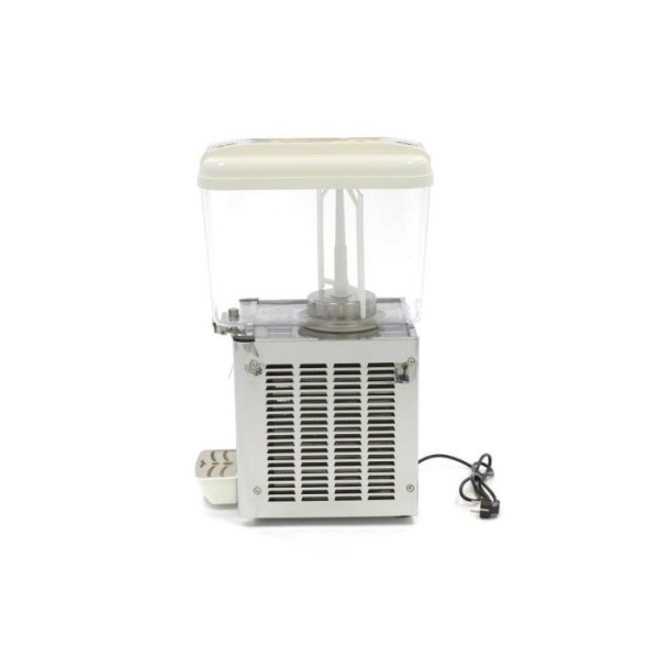 Αυτός ο διανομέας ποτών διαθέτει μοντέρνο και κομψό σχεδιασμό, καθιστώντας τον μια ξεχωριστή προσθήκη σε κάθε χώρο εστίασης. Το περίβλημα και η λαβή από ανοξείδωτο ατσάλι όχι μόνο προσθέτουν στην αισθητική του, αλλά εξασφαλίζουν επίσης εύκολη συντήρηση και καθαριότητα. Με την αθόρυβη λειτουργία της, αυτή η συσκευή είναι ιδανική για μεγάλους χώρους εστίασης ή θορυβώδεις κουζίνες. Ο μηχανισμός συνεχούς ανάδευσης διατηρεί το περιεχόμενο της δεξαμενής καλά αναμεμειγμένο για βέλτιστα αποτελέσματα. Το σύστημα ψύξης λειτουργεί με τη χρήση ψυκτικού υγρού R290.