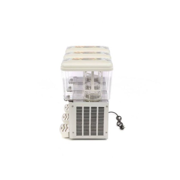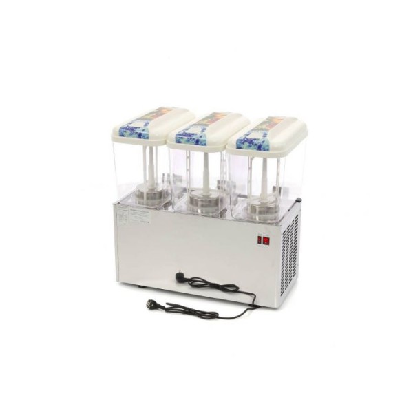 Ο επαγγελματικός διανομέας ποτών όχι μόνο παρουσιάζει τα ποτά με κομψό τρόπο στους πελάτες, αλλά τους επιτρέπει επίσης να σερβίρονται μόνοι τους χρησιμοποιώντας το βολικό σύστημα βρύσης. Αυτό τον καθιστά ιδανική συσκευή για κάθε επιχείρηση εστίασης που θέλει να εξυπηρετεί τους επισκέπτες γρήγορα και αποτελεσματικά. Είναι επίσης ωφέλιμο να υπάρχει πίσω από οποιοδήποτε μπαρ ή πάγκο. Ο διανομέας μπορεί να φιλοξενήσει μια ποικιλία ποτών, όπως αναψυκτικά, νερό, χυμούς και ακόμη και smoothies. Διαθέτει τρεις δεξαμενές 18 λίτρων από πολυκαρβονικό με συνολική χωρητικότητα 54 λίτρων και είναι όλες 100% απαλλαγμένες από BPA.