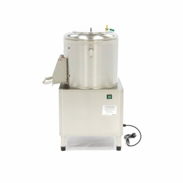 Όταν εργάζεστε με μεγάλες μερίδες καρότων ή πατάτας, το ξεφλούδισμα μπορεί να είναι μια πολύ χρονοβόρα εργασία. Το ξεφλούδισμα με το χέρι είναι συχνά αναποτελεσματικό, επειδή χάνετε περισσότερο από το λαχανικό. Με αυτό το επαγγελματικό μηχάνημα αποφλοίωσης, οι πατάτες καθαρίζονται και αποφλοιώνονται γρήγορα και επαγγελματικά, εξοικονομώντας σας χρόνο. Το μηχάνημα διαθέτει ανθεκτική πλάκα αποφλοίωσης με δομή που έχει σχεδιαστεί για να ξεφλουδίζει τα λαχανικά. Το νερό εισέρχεται στη μηχανή αποφλοίωσης μέσω της σύνδεσης νερού και επειδή οι πατάτες κινούνται συνεχώς, αποφλοιώνονται ομοιόμορφα. Μέχρι 15 κιλά πατάτες μπορούν να τοποθετηθούν ταυτόχρονα στη μηχανή αποφλοίωσης και μετά από έναν κύκλο τριών λεπτών, αυτές είναι έτοιμες. Κάθε ώρα παράγονται έως και 300 κιλά αποφλοιωμένων πατατών.
