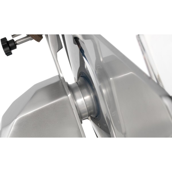 Ανοδιωμένο χυτό κράμα αλουμινίου. - Μεγάλη απόσταση μεταξύ λεπίδας και κινητήρα για εύκολο καθάρισμα. - Αεριζόμενος κινητήρας. - Σφυρήλατα, σκληρυμένα πτερύγια μεγάλου πάχους. - Φορέας που κινείται σε αυτολιπαινόμενους δακτυλίους και επικαλυμμένους πείρους. - Βίδες και εκτροπέας κοπής από ανοξείδωτο χάλυβα. - Ισχυρή στήριξη μετρητή πάχους. - Χυτευτό σύστημα ακονίσματος. - Συμπαγείς διαστάσεις και μεγάλη ικανότητα κοπής. - Επαγγελματικό CE με συσκευή για την απελευθέρωση του φορείου. - Διατίθενται λεπίδες με επίστρωση τεφλόν ή οδοντωτές λεπίδες κατόπιν παραγγελίας. - Κλίση λεπίδας 25˚.