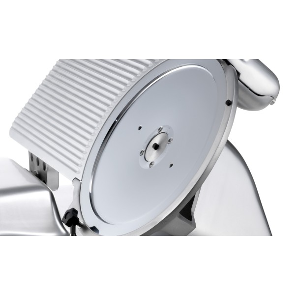 Στρογγυλεμένος σχεδιασμός, χωρίς αιχμηρές άκρες και ορατές βίδες. - Επιχρωμιωμένη και τροχισμένη ράβδος ολίσθησης. - Αυτολιπαινόμενοι δακτύλιοι ράβδου ολίσθησης. - Βουλκανισμένα ελαστικά στοπ στο φορείο. - Αφαιρούμενο κάλυμμα στήριξης για την πλάκα μετρητή πάχους. - Εκτροπέας φετών από ανοξείδωτο ατσάλι. - Τροχαλία λεπίδας χωρίς κεντρική οπή για εύκολο καθάρισμα. - Ρυθμιζόμενη κίνηση της τράπεζας κοπής στα πρώτα 3 mm του ανοίγματος, εγγυάται υψηλότερη ακρίβεια κοπής λεπτών φετών. - Δακτύλιος ασφαλείας στον άξονα της τράπεζας για την αποφυγή διαρροής υγρών στο εσωτερικό της μηχανής. - Εύκολα αφαιρούμενο κάλυμμα λεπίδας - Βίδες και εξαρτήματα από ανοξείδωτο ατσάλι. - Κλειστή και σφραγισμένη τροχαλία ιμάντα. - Απόσταση 49,5 mm μεταξύ λεπίδας και κινητήρα. - Κάτω κάλυμμα. - Ηλεκτρονικό κύκλωμα εναλλαγής 110-220V μονοφασικό ή 220-280V τριφασικό. - Ενσωματωμένο εργαλείο ακονίσματος με προστασία κάτω μέρους. - Τυπικό εργαλείο αφαίρεσης λεπίδας. - Κλίση λεπίδας 35°. - Πλαστικό κουμπί. - Ελαστικά πόδια. - Κουμπιά από μονωμένο ανοξείδωτο ατσάλι (IP 67) στο περίβλημα.
