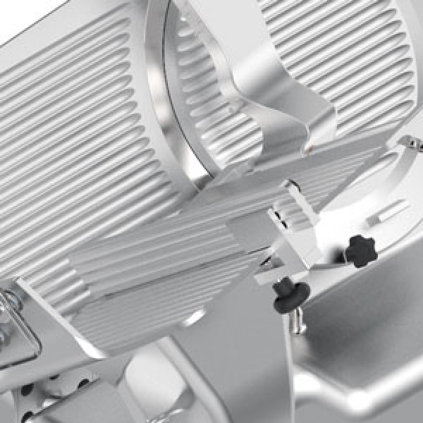 Στρογγυλεμένος σχεδιασμός, χωρίς αιχμηρές άκρες και ορατές βίδες. - Επιχρωμιωμένη και τροχισμένη ράβδος ολίσθησης. - Αυτολιπαινόμενοι δακτύλιοι ράβδου ολίσθησης. - Βουλκανισμένα ελαστικά στοπ στο φορείο. - Αφαιρούμενο κάλυμμα στήριξης για την πλάκα μετρητή πάχους. - Εκτροπέας φετών από ανοξείδωτο ατσάλι. - Βίδες και εξαρτήματα από ανοξείδωτο ατσάλι. - Τροχαλία λεπίδας χωρίς κεντρική οπή για εύκολο καθάρισμα. - Ρυθμιζόμενη κίνηση της τράπεζας κοπής στα πρώτα 3 mm του ανοίγματος, εγγυάται υψηλότερη ακρίβεια κοπής λεπτών φετών. - Δακτύλιος ασφαλείας στον άξονα της τράπεζας για την αποφυγή διαρροής υγρών στο εσωτερικό της μηχανής. - Εύκολα αφαιρούμενο κάλυμμα λεπίδας - Κάτω κάλυμμα. - Ηλεκτρονικό κύκλωμα εναλλαγής 110-220-380 V μονοφασικό και τριφασικό. - Ενσωματωμένο εργαλείο ακονίσματος με προστασία κάτω μέρους. - Τυπικό εργαλείο αφαίρεσης λεπίδας. - Κλίση λεπίδας 38°. - Πλαστικό κουμπί - Ελαστικά πόδια - Κουμπιά από μονωμένο ανοξείδωτο ατσάλι (IP 67) στο περίβλημα. - Κλειστή και σφραγισμένη μονάδα μείωσης ατέρμονα κοχλία - Λίπανση σε λουτρό λαδιού - Το αυτόματο μοντέλο δεν είναι διαθέσιμο.