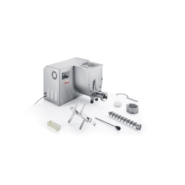 Κατάλληλο για μικρά εργαστήρια και μεγάλα εστιατόρια ή καντίνες - Αξιόπιστο, φιλικό προς το χρήστη και εύκολο στον καθαρισμό - Σώμα από ανοξείδωτο ατσάλι AISI 304 - Αυτοστηριζόμενη δομή με 4 τροχούς από ανοξείδωτο ατσάλι - Ισχυρός, αερόψυκτος κινητήρας με μειωτήρα κιβωτίου ταχυτήτων σε λουτρό λαδιού - Υψηλής απόδοσης και εύκολο στην αφαίρεση κουπί ζύμωσης - Αλληλοσυνδεόμενο καπάκι από ανοξείδωτο ατσάλι - Βολική αφαιρούμενη χοάνη για την προσθήκη υγρών συστατικών κατά την επεξεργασία - Σκουλήκι, κεφαλή και δακτύλιος από ανοξείδωτο ατσάλι - Χειριστήρια από ανοξείδωτο ατσάλι IP 67 - Σύστημα εξαναγκασμένης ψύξης αέρα για βαριά χρήση Επιλογές: - Πλήρης διαθεσιμότητα οποιουδήποτε είδους μήτρων - Κόφτης ζυμαρικών μεταβλητής ταχύτητας - Φίλτρο ομοιόμορφης λειτουργίας - Μηχανή και καλούπια ραβιόλι - Κιτ ψύξης κεφαλής σε 2 λύσεις: - Frio 5: κιτ μόνο με σωλήνες για σύνδεση μη επιστρεφόμενου νερού - Frio R: πρόσθετο κιτ με αντλία ανακυκλοφορίας - Πίνακας ελέγχου wifi SRCS.