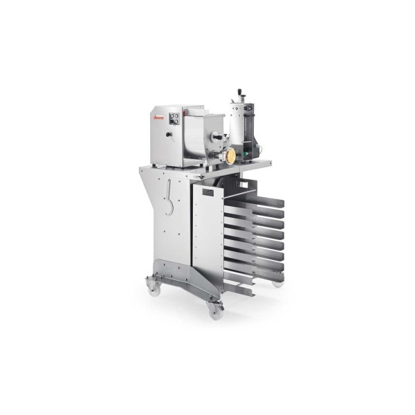 Είναι ένα καρότσι εξοπλισμένο και αφιερωμένο στις μηχανές ζυμαρικών Sirman σε συνδυασμό με το Raviomatic. • Σχεδιασμένο για να βελτιστοποιεί και να επιταχύνει όλες τις λειτουργίες των Concerto, Sirpasta και Raviomatic, σας επιτρέπει να αλλάζετε γρήγορα από την παραγωγή μακριών ζυμαρικών σε γεμιστά ζυμαρικά ή κοντά ζυμαρικά. • Κατασκευασμένο εξ ολοκλήρου από ανοξείδωτο ατσάλι Aisi 304, είναι πλήρες με όλες τις απαραίτητες λειτουργίες για εργασία με πλήρη άνεση και μέγιστη παραγωγικότητα: - Περιστρεφόμενο μπροστινό ράφι για τοποθέτηση του Raviomatic σε δευτερόλεπτα - Πρακτική σχάρα για κασέτες που μπορούν να αποσυναρμολογηθούν για καθαρισμό - Πίσω ράφια για την τοποθέτηση κοπτικών ζυμαρικών, καλουπιών και μήτρων - Ανθεκτικά και σταθερά πόδια στήριξης εξοπλισμένα με τροχούς από ανοξείδωτο ατσάλι με φρένα - Πρακτική θέση για τα παρεχόμενα κλειδιά στερέωσης. Επιλογές: • Διάτρητα κουτιά • Συρτάρι στεγνωτηρίου για το στέγνωμα των ζυμαρικών.