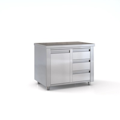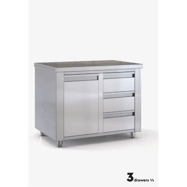 Ερμάριο επαγγελματικό ανοξείδωτο με Συρτάρια Και Αμπάρι 110X70X87 εκ ID-ER110.3SIR.AB