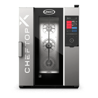Επαγγελματικός φούρνος combi υψηλής απόδοσης, εξοπλισμένος με ένα υπερσύγχρονο λειτουργικό σύστημα και έξυπνη τεχνολογία σχεδιασμένη για να χειρίζεται τέλεια οποιαδήποτε διαδικασία μαγειρέματος γαστρονομίας, ζαχαροπλαστικής και αρτοποιίας. Είναι πιστοποιημένος με ENERGY STAR® για χαμηλή κατανάλωση και μείωση των αποβλήτων, χάρη στο αυτόματο σύστημα πλύσης με ανακυκλοφορία. Το CHEFTOP-X™ διαθέτει θάλαμο μαγειρέματος από χάλυβα 316L και ενσωματωμένο σύστημα φιλτραρίσματος νερού RO.Care που εξαλείφει την ανάγκη για εξωτερικές επεξεργασίες. Είναι εξοπλισμένο με ενσωματωμένο μικρόφωνο για να επιτρέπει τον φωνητικό έλεγχο και την αλληλεπίδραση με τους εταιρικούς σεφ της UNOX για να λαμβάνουν βοήθεια στο μαγείρεμα απευθείας μέσω του διαδραστικού πίνακα. Το προηγμένο λειτουργικό σύστημα Digital.ID™ επιτρέπει την αποθήκευση όλων των αγαπημένων ρυθμίσεων στον λογαριασμό και τη μεταφορά τους από έναν φούρνο σε έναν άλλο σε λίγα δευτερόλεπτα. Με την εφαρμογή Digital.ID™, είναι δυνατό να ελέγχετε τον φούρνο μέσω smartphone καθώς και να προσαρμόζετε τους λογαριασμούς.