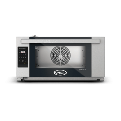 Φούρνος Convention με υγρασία και 2 προγραμματιζόμενες ταχύτητες ανεμιστήρα. Εύχρηστος φούρνος, ιδανικός για το ψήσιμο προϊόντων πρωινού και σνακ, ιδιαίτερα γλυκισμάτων και κατεψυγμένων αρτοσκευασμάτων. Ο ψηφιακός πίνακας επιτρέπει την αποθήκευση 99 προγραμμάτων με 3 βήματα μαγειρέματος συν προθέρμανση, 12 εκ των οποίων με άμεση πρόσβαση. Στρογγυλεμένος θάλαμος από ανοξείδωτο χάλυβα για διευκόλυνση του καθαρισμού και διασφάλιση μέγιστης υγιεινής.