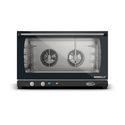 Φούρνος Convention με υγρασία, αναλογικό έλεγχο και θάλαμο μαγειρέματος από ανοξείδωτο χάλυβα 304. Λειτουργία χρόνου, θερμοκρασίας, ποσοστού ατμού και 2 ταχυτήτων ανεμιστήρα. Ιδανικός για όλες τις διαδικασίες ψησίματος φρέσκων και κατεψυγμένων αρτοσκευασμάτων. Η τεχνολογία AIR.Plus εγγυάται τέλεια ομοιομορφία μαγειρέματος σε όλα τα ταψιά.