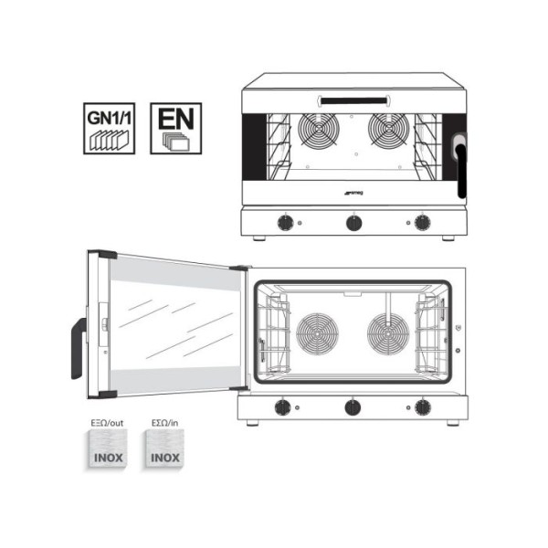 | Χωρητικότητα | 4 λαμαρίνες (600x400) ή GN 1/1 |