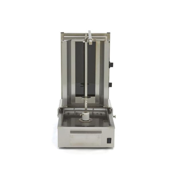 Πουλάτε τακτικά ντονέρ κεμπάπ, σαουάρμα ή γύρο στην επιχείρησή σας catering; Τότε χρειάζεστε μια επαγγελματική σχάρα για κεμπάπ. Χρησιμοποιώντας αυτή τη σχάρα με δύο καυστήρες και προστατευτικό πλέγμα από ανοξείδωτο ατσάλι, μπορείτε να ψήνετε περίπου 20 κιλά κρέατος τη φορά στη σούβλα. Αυτή η σχάρα είναι κατάλληλη για εντατική καθημερινή χρήση και αποτελεί προσθήκη σε κάθε μαγαζί με σαουάρμα, ψητοπωλείο, ελληνικό εστιατόριο ή άλλη κουζίνα catering. Μπορείτε να ρυθμίσετε τη θερμοκρασία και των δύο καυστήρων ξεχωριστά, ώστε το κρέας να ψήνεται ομοιόμορφα σε όλη τη σούβλα. Η σούβλα περιστρέφεται μία φορά το λεπτό, ώστε κάθε πλευρά του κρέατος να ψήνεται τέλεια.