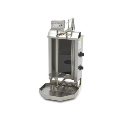 Το αξιόπιστο μοτέρ βρίσκεται στο πάνω μέρος της σχάρας. Με αυτόν τον τρόπο, δεν χρειάζεται να τοποθετήσετε τη σχάρα σε χαμηλό τραπέζι, αλλά μπορεί να τοποθετηθεί σε οποιονδήποτε πάγκο, ενώ παράλληλα σας επιτρέπει να κόβετε το κρέας κατά μήκος της σούβλας. Το λίπος που στάζει από το κρέας συλλέγεται στον αφαιρούμενο δίσκο στάγδην από ανοξείδωτο ατσάλι, ο οποίος διαθέτει φίλτρο. Για να είστε απόλυτα έτοιμοι και να σερβίρετε νόστιμα πιάτα σχάρας στην επιχείρησή σας εστίασης, παραγγείλτε ένα ειδικό ηλεκτρικό μαχαίρι κεμπάπ, το οποίο σας βοηθά να κόβετε εύκολα το κρέας από τη σούβλα.