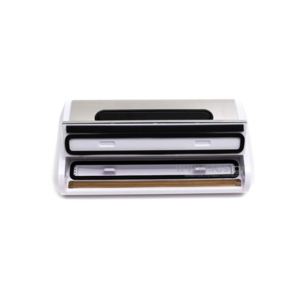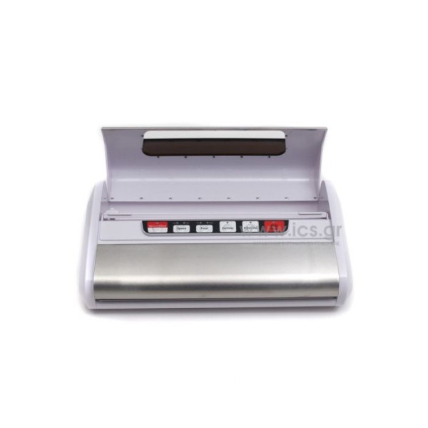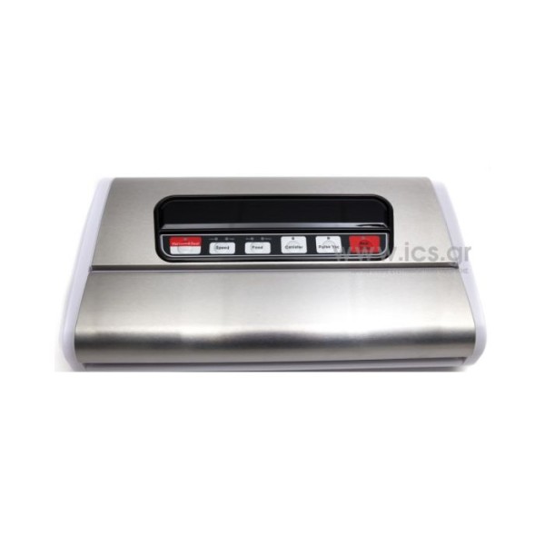 Vacuum κενού αέρος από ανοξείδωτο χάλυβα, οθόνη LED, διπλή αντλία, Pulse μποτόν. Με χώρο αποθήκευσης ρολού και ενσωματωμένο κόφτη. Διπλή στεγανοποιητική ράβος. Ξεχωριστή λειτουργία κενού για ξηρά ή υγρά τρόφιμα. Η διπλή αντλία εξασφαλίζει πιο σταθερές λειτουργίες και γρηγορότερη ταχύτητα εκκένωσης. Κουμπί παλμικό για έλεγχο του χρόνου και του βαθμού εκκένωσης. Προαιρετική ταχύτητα κινητήρα (υψηλή/χαμηλή). Πάχος συγκόλησης έως 3 mm, αποτρέπει τη διαρροή αέρα.