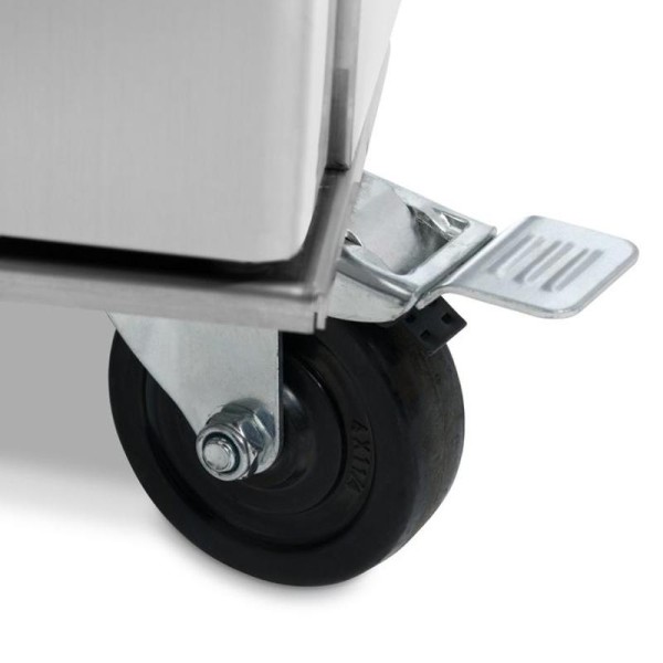 Ο ψηφιακός ελεγκτής θερμοκρασίας σε αυτόν τον καταψύκτη καθιστά πολύ εύκολη τη ρύθμιση των σωστών θερμοκρασιών, εντός του εύρους -10 έως -20°C. Για να αξιοποιήσετε στο έπακρο αυτή την επαγγελματική συσκευή, θα πρέπει να την τοποθετήσετε σε χώρο με θερμοκρασία περιβάλλοντος έως 43°C. Ο καταψύκτης περιλαμβάνει ένα σύστημα ψύξης με ανεμιστήρα, το οποίο διαθέτει επίσης έναν ειδικό κύκλο ψύξης που συμβάλλει στη μείωση της συσσώρευσης πάγου. Το ψυκτικό μέσο που χρησιμοποιείται σε αυτόν τον στιβαρό καταψύκτη είναι το R290, το οποίο δεν περιέχει CFC. Τέλος, ο καταψύκτης είναι κινητός. Διαθέτει τέσσερις τροχούς, συμπεριλαμβανομένων δύο φρένων, ώστε να διευκολύνεται η μετακίνησή του όταν χρειάζεται.