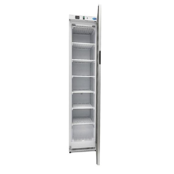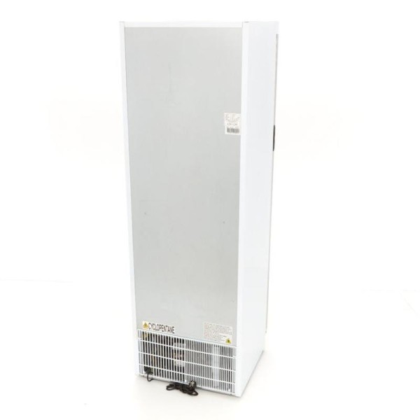 Αυτός ο επαγγελματικός καταψύκτης έχει μικτή χωρητικότητα 400 λίτρων για την αποθήκευση κατεψυγμένων προϊόντων. Αυτός ο λευκός καταψύκτης ταιριάζει άψογα στις περισσότερες επαγγελματικές κουζίνες. Διαθέτει έξι σταθερά ράφια που παρέχουν επαρκή αποθηκευτικό χώρο. Τα ράφια είναι σχεδιασμένα σε μοτίβο πλέγματος για να βελτιώνουν τον εξαερισμό. Η γυάλινη πόρτα περιλαμβάνει κλειδαριά που σας επιτρέπει να βλέπετε τα κατεψυγμένα προϊόντα χωρίς να ανοίγετε το ψυγείο.