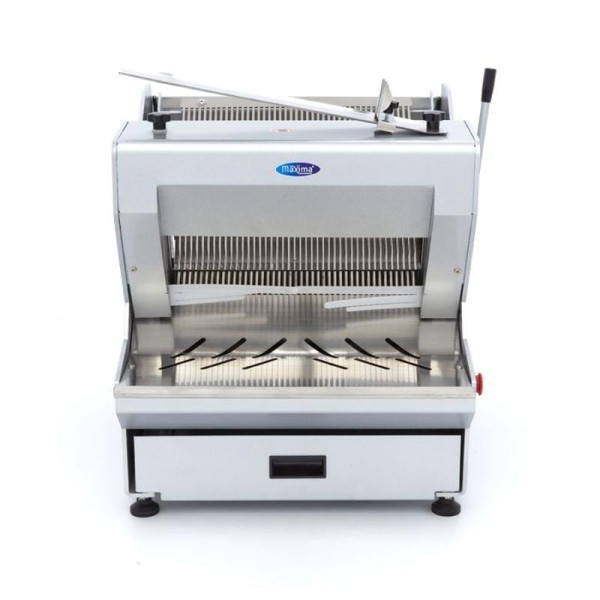Κατασκευασμένος από επικαλυμμένο ατσάλι, αυτός ο κόφτης ψωμιού είναι ένα ανθεκτικό μηχάνημα και έχει σχεδιαστεί για την κοπή διαφόρων τύπων ψωμιού. Οι φέτες ψωμιού μας διατίθενται με διαφορετικά πάχη ψωμιού. Αυτό το μηχάνημα διαθέτει πριονωτές λεπίδες από ανοξείδωτο ατσάλι που απέχουν μεταξύ τους 11 mm.