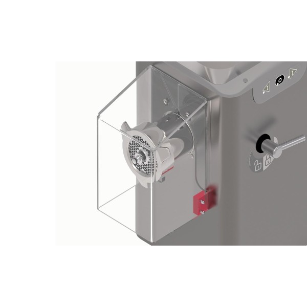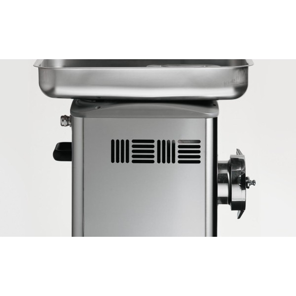 - Εξαιρετικά συμπαγής ψυχόμενη κρεατομηχανή - Σύστημα ψύξης θερμοηλεκτρικής μονάδας: χωρίς συμπιεστή, χωρίς αέριο, εξοικονόμηση ενέργειας - Ισχύς θερμοηλεκτρικής μονάδας: 70 Watt - Ψυγμένος λαιμός τροφοδοσίας και άκρο άλεσης - Αυτορυθμιζόμενη θερμοκρασία - Αφαιρούμενος και εύκολος καθαρισμός από ανοξείδωτο χάλυβα και λαιμός τροφοδοσίας - Εύκολη συντήρηση (δεν χρειάζεται ψυκτικός τεχνικός) - Τετράγωνος λαιμός τροφοδοσίας (υψηλής απόδοσης και με προκομμένο κιμά) - Θερμική προστασία σε μονοφασικούς κινητήρες - Γρήγορο και ανθεκτικό σύστημα κλειδώματος κεφαλής (κατοχυρωμένο με δίπλωμα ευρεσιτεχνίας στην έκδοση 32) Προαιρετικά: - Σύστημα μισού/ολικού κάτω μέρους. - Hamburger M μόνο για κρεατομηχανή (mod. H) - Κιτ γεμίσματος. - Υπερμεγέθης δίσκος. - Μεσαία πόδια. - Προστασία αλληλοσύνδεσης για πλάκες με οπές άνω των 8 mm (Απαιτείται σύστημα προστασίας αλληλοσύνδεσης για τη χρήση πλακών με οπές άνω των 8 mm). - Κιτ γεμίσματος, χωνιά ø 10-16-25.