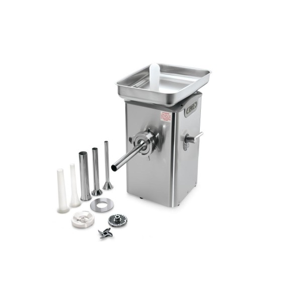 - Συμπαγής κρεατομηχανή βαρέως τύπου - Βαθμός προστασίας IP 54, χειριστήρια 24 Volt, αντίστροφη λειτουργία (έκδοση CE) - Σφραγισμένο κιβώτιο ταχυτήτων σε λουτρό λαδιού - Αδιάβροχο κιβώτιο ταχυτήτων με σύστημα διπλής στεγανοποίησης - Στόμιο και ατέρμονας τροφοδοσίας Aisi 304 S/S - Γρήγορο και ανθεκτικό σύστημα κλειδώματος κεφαλής (κατοχυρωμένο με δίπλωμα ευρεσιτεχνίας στην έκδοση 32) - Η έκδοση 22 διατίθεται επίσης με στρογγυλό λαιμό τροφοδοσίας - Αεριζόμενοι κινητήρες υψηλής απόδοσης για συνεχή λειτουργία - Θερμική προστασία σε μονοφασικούς κινητήρες - Χώρος για μαχαίρια και πλάκες - Εύκολος καθαρισμός Προαιρετικά: - Σύστημα ολικού/μισού κάτω μέρους - Μόνο για κρεατομηχανή Hamburger M (mod. H) - Κιτ γεμίσματος - Κιτ γεμίσματος, χωνιά ø 10-16-25 - Υπερμεγέθης δίσκος - Μεσαία πόδια - Προστασία αλληλοσύνδεσης για πλάκες με οπές άνω των 8 mm (Απαιτείται σύστημα προστασίας αλληλοσύνδεσης για τη χρήση πλακών με οπές άνω των 8 mm).
