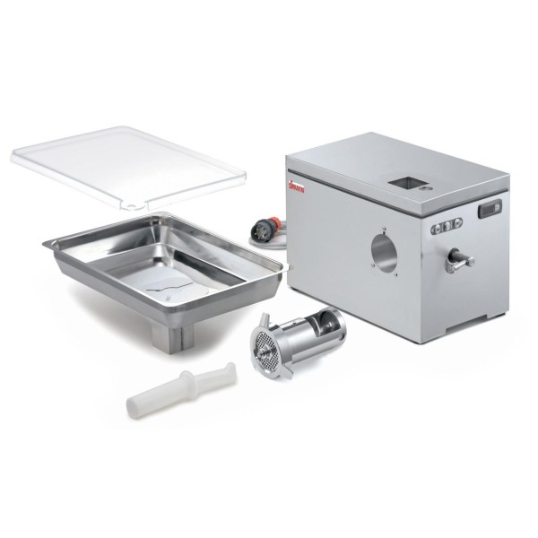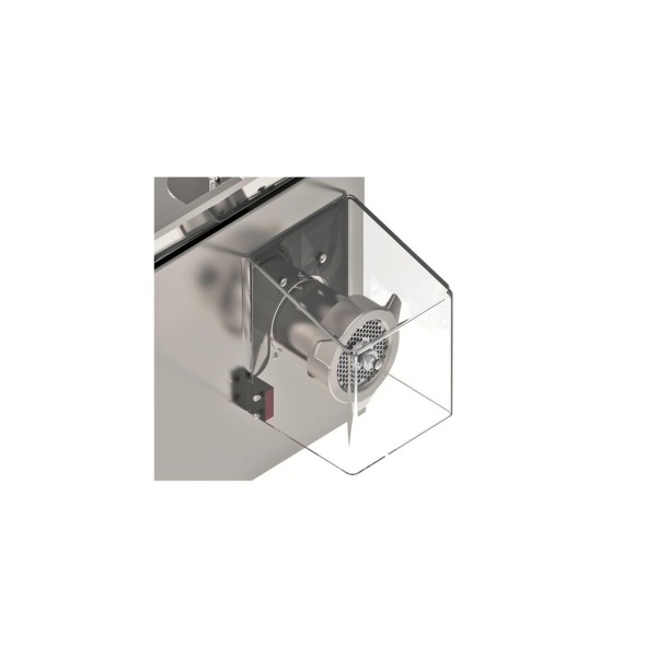 - Κατασκευή από ανοξείδωτο χάλυβα AISI 304 - Ισχυροί κινητήρες με μόνωση IP 55 και ψύξη με ανεμιστήρα για συνεχή χρήση - Ο κινητήρας-μειωτής χωρίς κοχλία που λειτουργεί σε λουτρό λαδιού επιτρέπει μεγάλη διάρκεια ζωής - Ο κινητήρας-μειωτής εξοπλισμένος με διπλή στεγανοποίηση για μακρά και απρόσκοπτη λειτουργία - Βολικός μηχανισμός κλειδώματος κεφαλής (εκδόσεις CE) - Κεφαλή κιμά από ανοξείδωτο χάλυβα, προσεκτικά σχεδιασμένη για υψηλή παραγωγή - Δίσκος τροφοδοσίας σχεδιασμένος με τετράγωνο λαιμό για εξαιρετική απόδοση - Δίσκος τροφοδοσίας με κλειδαριά ασφαλείας (εκδόσεις CE) - Χειριστήρια από ανοξείδωτο χάλυβα με προστασία IP 67 - Ψυγείο αερίου 150 Watt, R290 - Ψύξη στον λαιμό του δίσκου τροφοδοσίας, στην κεφαλή κιμά και σε ολόκληρο τον δίσκο τροφοδοσίας. Προαιρετικά: - Προστασία κλειδώματος για πλάκες με οπές άνω των 8 mm (Απαιτείται σύστημα προστασίας κλειδώματος για τη χρήση πλακών με οπές άνω των 8 mm) - Μερική ή ολική κεφαλή κιμά συστήματος Unger - Καπάκι δίσκου τροφοδοσίας από πλεξιγκλάς - Μόνο Hamburger M για κόφτη (mod. H)