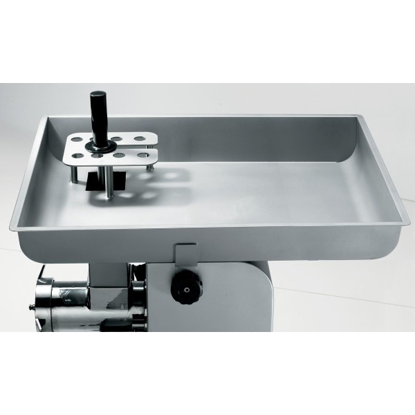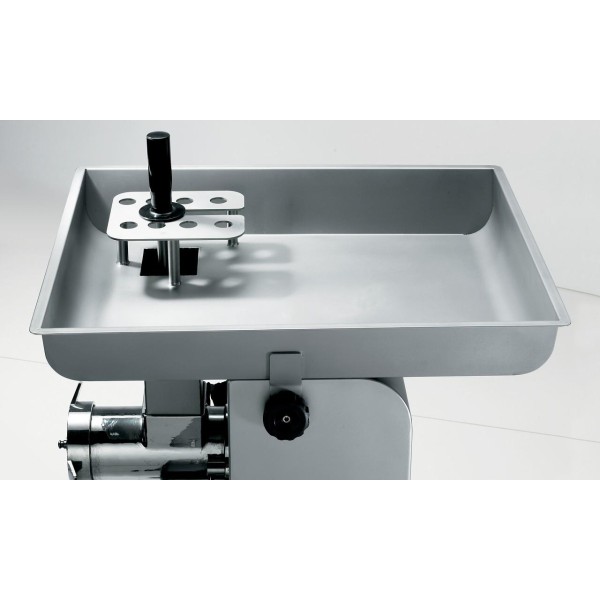 · Συμπαγής, βαρέως τύπου κρεατομηχανή · Κεφαλή λείανσης υψηλής απόδοσης, αποκλειστικού σχεδιασμού · Διατίθεται τόσο επιτραπέζια όσο και επιδαπέδια (διατίθενται πολλά προαιρετικά) · Κεφαλή από ανοξείδωτο ατσάλι με γρήγορη προσαρμογή μπαγιονέτας · Τετράγωνος λαιμός τροφοδοσίας (υψηλή απόδοση και με προ-κιμά) · Κιβώτιο ταχυτήτων με σύστημα διπλής στεγανοποίησης · Αεριζόμενος κινητήρας για συνεχή λειτουργία · Χειριστήρια με προστασία IP 67 με αντίστροφη μέτρηση. Προαιρετικά: · Προστασία υπερφόρτωσης · Μεγαλύτερος δίσκος: Gigante mm 535x660x90 · Μεγαλύτερος δίσκος: Super mm 563x900x120 · Κοντό mm 131, μεσαίο mm 416, μακριά mm 688 πόδια · Θήκη δίσκου υποδοχής · Σύστημα μισού/ολικού υπογείου · Κιτ πλήρωσης · Προστατευτικό πιτσιλίσματος · Προστασία αλληλοσύνδεσης για πλάκες με τρύπες άνω των 8 mm (Απαιτείται σύστημα προστασίας αλληλοσύνδεσης για τη χρήση πλακών με τρύπες άνω των 8 mm) · Εξάρτημα hamburger S με χειριστήρια πεντάλ.