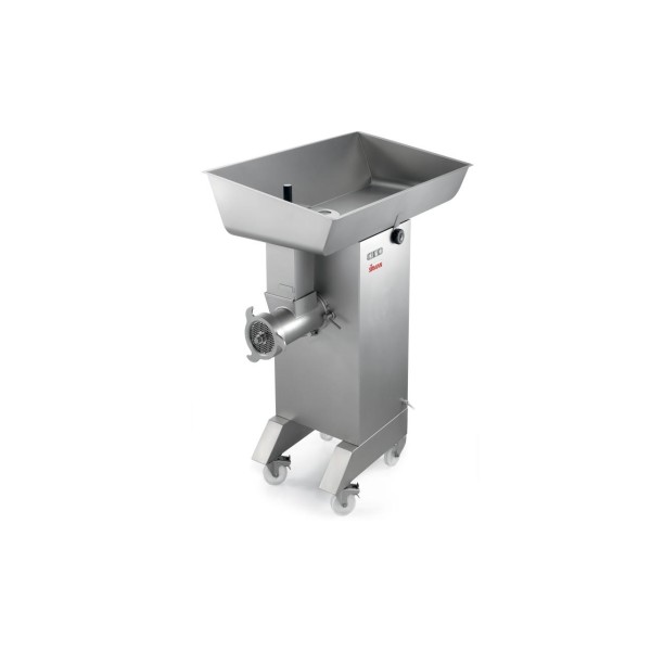 - Κατασκευή από ανοξείδωτο χάλυβα AISI 304. - Μπορεί να ψεκαστεί. - Τριφασικοί κινητήρες 5 Hp και 7 Hp. - Κιβώτιο ταχυτήτων με προστασία από νερό, σε λουτρό λαδιού. Σετ άλεσης: - Πλήρως κατασκευασμένο από ανοξείδωτο χάλυβα AISI 304. - Σχεδιασμένο για υψηλή απόδοση - Το μηχάνημα λειτουργεί άψογα ακόμα και αν το προϊόν υποστεί επεξεργασία δύο ή περισσότερες φορές - Ωριαία απόδοση: 1.100 Kg (πραγματική) (42) - Ωριαία απόδοση: 3500 kg (πιθανή) - Μη επεξεργασμένο κρέας μέσα στο σετ άλεσης στο τέλος του κύκλου εργασίας: 50-90 g. - Πείρος κίνησης από ανοξείδωτο χάλυβα. - Αποκλειστικό, κατοχυρωμένο με δίπλωμα ευρεσιτεχνίας σύστημα ανίχνευσης πλάκας και δακτυλίου (CE) - Πείρος ατέρμονα κοχλία από σκληρυμένο χάλυβα. - Το σετ άλεσης αποσυναρμολογείται γρήγορα για ταχύτερο καθαρισμό και απολύμανση. - Ο τετράγωνος "λαιμός" τροφοδοσίας επιτρέπει ταχύτερους κύκλους επεξεργασίας. - Μεγάλη χοάνη τροφοδοσίας 563x 900 xh 120 mm με μικροδιακόπτη ασφαλείας - Χειριστήρια από ανοξείδωτο χάλυβα με προστασία από το νερό IP 67 με αντίστροφη μέτρηση (στις εκδόσεις CE). Στάνταρ αξεσουάρ: - Αυτοακονιζόμενο μαχαίρι από ανοξείδωτο ατσάλι και πλάκα 4,5 mm - Ωθητής προϊόντος - Εργαλείο αφαίρεσης σκουληκιών και πλακών - Εγχειρίδιο χρήσης και συντήρησης Προαιρετικά: - ΠΛΗΡΗΣ ΕΛΕΓΧΟΣ για τον χειρισμό των αξεσουάρ - Προστατευτικό από πιτσιλίσματα από ανοξείδωτο ατσάλι - Πεντάλ ελέγχου - Σετ λείανσης 1/2 από ανοξείδωτο ατσάλι - Σετ λείανσης ολικού 1/2 από ανοξείδωτο ατσάλι - Προστασία αλληλοσύνδεσης για πλάκες με οπές άνω των 8 mm. (Απαιτείται σύστημα προστασίας αλληλοσύνδεσης για τη χρήση πλακών με οπές άνω των 8 mm). - Μεγάλη ποικιλία από πλάκες και μαχαίρια - Hamburger "S".