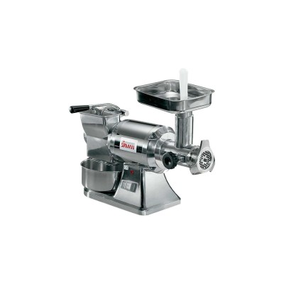 - Συνδυασμένη μηχανή για τρίψιμο και κιμά. - Κατασκευασμένη από χυτοπρεσσαριστό γυαλισμένο αλουμίνιο. - Αεριζόμενος κινητήρας. - Γαλβανισμένος κύλινδρος από χάλυβα. - Κιβώτιο ταχυτήτων σε λουτρό λαδιού. - Κεφαλή και ατέρμονας τροφοδοσίας από χυτοσίδηρο. (Ανοξείδωτος χάλυβας Aisi 304 κατόπιν παραγγελίας). - Πλάκες και μαχαίρια από ανοξείδωτο χάλυβα. - Αντίστροφη (προαιρετικά). Έκδοση CE: - Μικροδιακόπτης ασφαλείας στον μοχλό. - Χειριστήρια 24 volt και συσκευή NVR. Προαιρετικά: - Κύλινδρος από ανοξείδωτο χάλυβα. - Αντίστροφη.