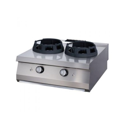 Υπάρχει χώρος για δύο τηγάνια γουόκ σε αυτή την επαγγελματική κουζίνα γουόκ αερίου. Μπορείτε να φτιάξετε τα πιο νόστιμα πιάτα με κρέας, ψάρι και λαχανικά με αυτό. Μπορείτε να τοποθετήσετε οποιοδήποτε τηγάνι γουόκ που είναι κατάλληλο για μαγείρεμα με φυσικό αέριο στους ανθεκτικούς χυτοσιδηρούς δακτυλίους Ø28,5 cm.