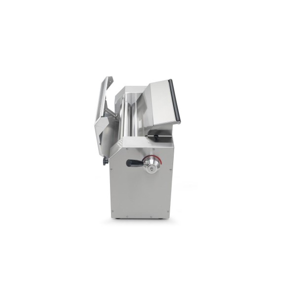 - Ισχυρός κύλινδρος ζύμης διαθέσιμος σε 4 μεγέθη - Κάθετη κατασκευή που μειώνει τον χώρο που καταλαμβάνεται στον πάγκο εργασίας και διευκολύνει το πιάσιμο της ζύμης κατά την έξοδο - Κατασκευασμένο από ανοξείδωτο ατσάλι - Αεριζόμενος κινητήρας σε λειτουργία χωρίς διακοπή με διπλή μείωση - Ομοαξονικός μειωτήρας + ιμάντας μετάδοσης - Ρυθμιζόμενο πάχος ζύμης 0÷10 mm - Έλεγχος ταχύτητας - Η περιοχή εισόδου προστατεύεται με μικροδιακόπτη ασφαλείας - Ευρεία χοάνη για την είσοδο ζύμης, εύκολη στην αφαίρεση - Προστασία χεριών από ανοξείδωτο ατσάλι αφαιρούμενη για καθαρισμό - Ιδανικό και για πλαστικοποίηση πίτσας Προαιρετικά - Κόφτης εφαρμογής διαθέσιμος σε 5 μεγέθη, mm 2 - 4 - 6 - 8 - 12, πλάτος κόπτη ζυμαρικών mm 165.