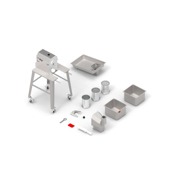 - Σύγχρονος μηχανοκίνητος μύλος λαχανικών, ο οποίος, χάρη στο εναλλάξιμο σύστημα κόσκινου, σας επιτρέπει να επεξεργάζεστε φρούτα και λαχανικά με μεγάλη ταχύτητα. Μπορεί επίσης να χρησιμοποιηθεί ως εκπυρηνωτής για ώριμα φρούτα, όπου ο πολτός μπορεί εύκολα να διαχωριστεί από το κόκκαλο. - Μηχανή με απλή χρήση και εύκολη συντήρηση, γρήγορη και εύκολη ακόμη και στις εργασίες καθαρισμού. - Σώμα μηχανής από ανοξείδωτο χάλυβα AISI 304 - Η χοάνη, η κεφαλή, η λεπίδα σπάτουλας και τα κόσκινα είναι κατασκευασμένα από ανοξείδωτο χάλυβα Aisi 304, μπορούν εύκολα να αποσυναρμολογηθούν και να πλυθούν στο πλυντήριο πιάτων - Ιδανικό για μαρμελάδες και κομπόστες φρούτων και λαχανικών, εξαιρετικό για πουρέ ντομάτας και λαχανικά γενικά. - Χρήσιμο για την εξαγωγή συμπυκνωμάτων ψαριών και κρέατος χρησιμοποιώντας χυμούς μαγειρέματος. - Εξοπλισμένο με δύο δοχεία για τη συλλογή αποβλήτων και εξευγενισμένου προϊόντος ξεχωριστά Προαιρετικά - Διατίθενται 4 φίλτρα με πλέγμα 1, 2, 3 και 5 mm - Μεγαλύτερος δίσκος - Μεταφορικός ιμάντας.