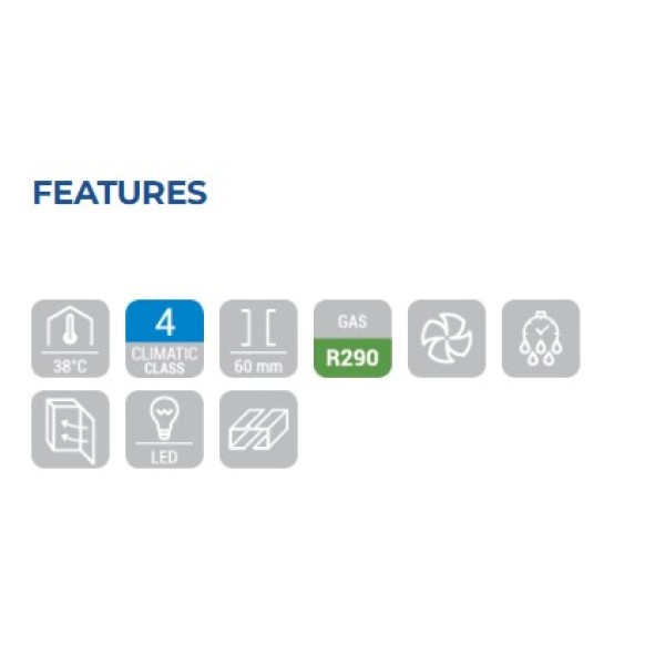 Mε μοντέρνα εμφάνιση, νέο σχεδιασμό γυάλινης πόρτας, στρογγυλεμένες άκρες στο επάνω μέρος και ψηφιακό θερμοστάτη με ανεξάρτητο κεντρικό διακόπτη και διακόπτη φωτισμού, το μοντέλο SRG 4100 είναι ο τέλειος συνδυασμός απόδοσης και αξιοπιστίας. Διαθέτει βάθος 600 mm, διατίθεται με 4 πόρτες και 2 ρυθμιζόμενα ράφια 325×410 mm σε κάθε πόρτα. Σχεδιάστηκε με έμφαση στην περιβαλλοντική βιωσιμότητα, εξοπλισμένο με φυσικό αέριο R290, μόνωση αφρού 60 mm σε κάθε πλευρά, διπλές γυάλινες πόρτες με εσωτερικό ανάγλυφο για καλύτερη στεγανοποίηση και πόρτα με αυτόματη επαναφορά για αποφυγή σπατάλης ενέργειας. Για να ολοκληρώσετε τη λίστα χαρακτηριστικών υψηλών προδιαγραφών, έρχεται με ρυθμιζόμενα σε ύψος πόδια (από 145 mm έως 185 mm) και φωτισμό LED σε κάθε πόρτα.
