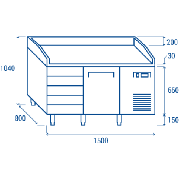 Πάγκος συντήρησης πίτσας QZ 16 για λαμαρίνες 600χ400 mm 150X80X104