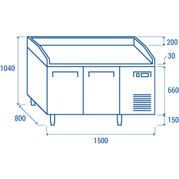 Πάγκος συντήρησης πίτσας QZ 20 για λαμαρίνες 600χ400 mm