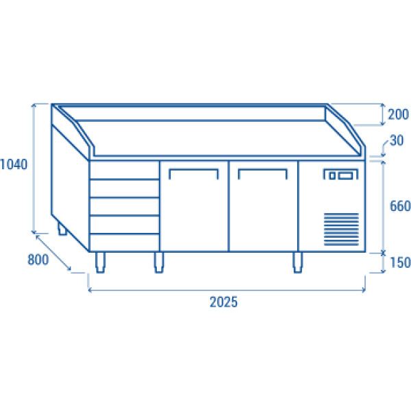 Πάγκος συντήρησης πίτσας QZ 26 για λαμαρίνες 600χ400 mm