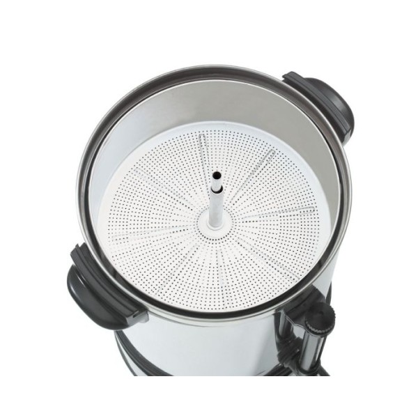 Το Percolator Regina Plus 90 ετοιμάζει έως και 15 λίτρα καφέ φίλτρου σε 60 λεπτά. Η μηχανή αυτή του καφέ θα σας πείσει με χαρακτηριστικά όπως η ένδειξη καθαρισμού από άλατα, η ένδειξη στάθμης πλήρωσης και η λειτουργία διατήρησης θερμότητας με βελτιστοποιημένο θερμαντικό κοίλωμα από ανοξείδωτο χάλυβα.