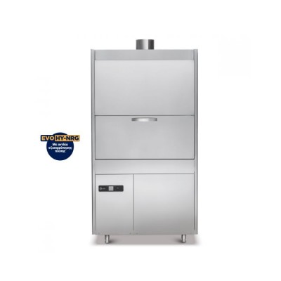 Το σύστημα HY-NRG δεν επιτρέπει στο κρύο νερό του δικτύου να μπεί στο Boiler κατά την διάρκεια της απόπλυσης.Έτσι τα σκεύη έρχονται σε επαφή μόνο με ζεστό νερό και τα αποτελέσματα της απόπλυσης είναι άριστα.Η ενσωματωμένη αντλία απόπλυσης στέλνει πάντα στους βραχίονες νερό σε συγκεκριμένη και σταθερή πιέση ανεξάρτητα από την πίεση του δικτύου ύδρευσης.Το σύστημα HY-NRG απότελείται από αντλία εξισορρόπησης πιέσης , Break Tank (patened) και ατμοσφαιρικό Boiler.