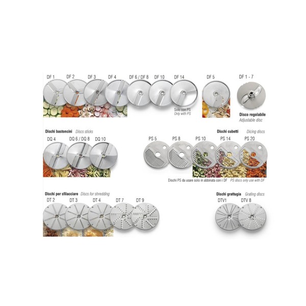 - Κατασκευή από κράμα αλουμινίου και ανοξείδωτο ατσάλι. - Αεριζόμενος κινητήρας για συνεχή λειτουργία. - Χάρη στον συμπαγή σχεδιασμό του, το μηχάνημα εγκαθίσταται εύκολα σε κάθε κουζίνα. - Το αποκλειστικό σύστημα τροφοδοσίας διευκολύνει την επεξεργασία ακόμη και μαλακών προϊόντων όπως το τυρί μοτσαρέλα. - Η ασφαλής λειτουργία εξασφαλίζεται από διακόπτες κλειδώματος στον ωθητήρα προϊόντων, το καπάκι και τον δίσκο συλλογής. - Διατίθεται έκδοση με καπάκι ανοξείδωτο ατσάλι κατάλληλο για πλύσιμο πιάτων. - Μεγάλος αριθμός δίσκων διαθέσιμος για κάθε χρήση.