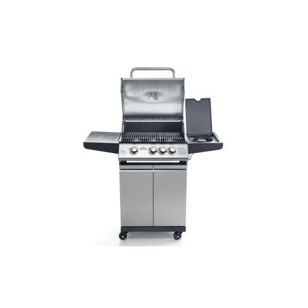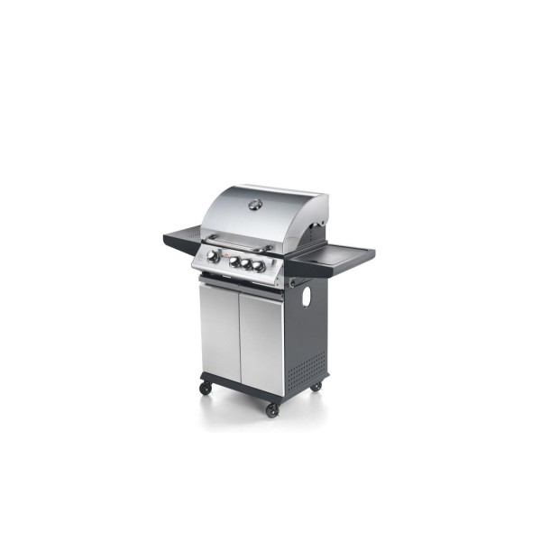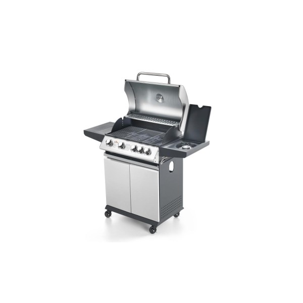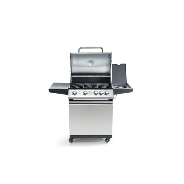 - Εξωτερική ψησταριά αερίου με καπάκι και θερμόμετρο - Σχάρα μαγειρέματος χωρισμένη σε 3 ή 4 περιοχές με ξεχωριστά χειριστήρια - Καπάκι, πίνακας ελέγχου και πόρτες, όλα από ανοξείδωτο ατσάλι - Πλαίσιο από λακαρισμένο ατσάλι - Ψησταριές από χυτοσίδηρο (BBQ3: n.1 από 220 mm + n.1 από 350 mm - BBQ4: n.3 από 220 mm) εύκολα αφαιρούμενες για καθάρισμα - Χρήσιμο υπερυψωμένο ράφι για να διατηρείτε το φαγητό ζεστό - Πρακτικός, αφαιρούμενος δίσκος κάτω από τους καυστήρες για τη συλλογή των υγρών μαγειρέματος - Ενσωματωμένος πλευρικός δακτύλιος αερίου με καπάκι - 4 ρόδες και φρένο - Το προϊόν αποστέλλεται έτοιμο για συναρμολόγηση. Προαιρετικά: - Ηλεκτρική σούβλα - Πιρούνι και φέτα ψησίματος mm 600 - Κάλυμμα BBQ.