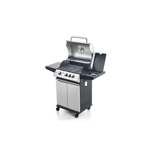 - Εξωτερική ψησταριά αερίου με καπάκι και θερμόμετρο - Σχάρα μαγειρέματος χωρισμένη σε 3 ή 4 περιοχές με ξεχωριστά χειριστήρια - Καπάκι, πίνακας ελέγχου και πόρτες, όλα από ανοξείδωτο ατσάλι - Πλαίσιο από λακαρισμένο ατσάλι - Ψησταριές από χυτοσίδηρο (BBQ3: n.1 από 220 mm + n.1 από 350 mm - BBQ4: n.3 από 220 mm) εύκολα αφαιρούμενες για καθάρισμα - Χρήσιμο υπερυψωμένο ράφι για να διατηρείτε το φαγητό ζεστό - Πρακτικός, αφαιρούμενος δίσκος κάτω από τους καυστήρες για τη συλλογή των υγρών μαγειρέματος - Ενσωματωμένος πλευρικός δακτύλιος αερίου με καπάκι - 4 ρόδες και φρένο - Το προϊόν αποστέλλεται έτοιμο για συναρμολόγηση. Προαιρετικά: - Ηλεκτρική σούβλα - Πιρούνι και φέτα ψησίματος mm 600 - Κάλυμμα BBQ.