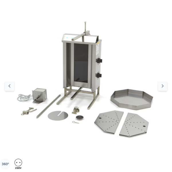Το αξιόπιστο μοτέρ βρίσκεται στο πάνω μέρος της σχάρας. Με αυτόν τον τρόπο, δεν χρειάζεται να τοποθετήσετε τη σχάρα σε χαμηλό τραπέζι, αλλά μπορεί να τοποθετηθεί σε οποιονδήποτε πάγκο, ενώ παράλληλα σας επιτρέπει να κόβετε το κρέας κατά μήκος της σούβλας. Το λίπος που στάζει από το κρέας συλλέγεται στον αφαιρούμενο δίσκο στάγδην από ανοξείδωτο ατσάλι που συνοδεύεται από φίλτρο. Για να είστε απόλυτα έτοιμοι και να σερβίρετε νόστιμα πιάτα σχάρας στην επιχείρησή σας εστίασης, παραγγείλτε ένα ειδικό ηλεκτρικό μαχαίρι κεμπάπ, το οποίο σας βοηθά να κόβετε εύκολα το κρέας από τη σούβλα.
