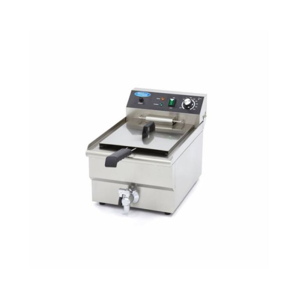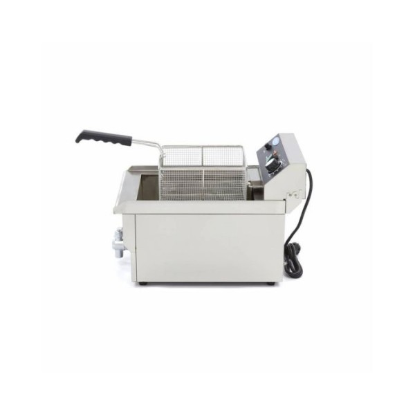 Αυτή η φριτέζα με χωρητικότητα 16 λίτρων αποτελεί πλεονέκτημα για κάθε επαγγελματική κουζίνα. Είναι ιδανική για την προετοιμασία μιας ποικιλίας τηγανητών φαγητών, όπως λαχανικά, ρολά άνοιξης, φρέσκες πατάτες τηγανιτές και άλλα σνακ. Η αλλαγή του λαδιού δεν είναι συνήθως η ωραιότερη δουλειά, αλλά χάρη στην ενσωματωμένη βρύση αποστράγγισης, γίνεται γρήγορα και αποτελεσματικά. Κατά την αλλαγή λαδιού, απλά τοποθετήστε ένα δοχείο κάτω από τη βρύση, ανοίξτε τη βρύση και περιμένετε μέχρι να στραγγίξει όλο το λάδι τηγανίσματος. Στη συνέχεια, κλείστε τη βρύση και πετάξτε το παλιό λάδι.