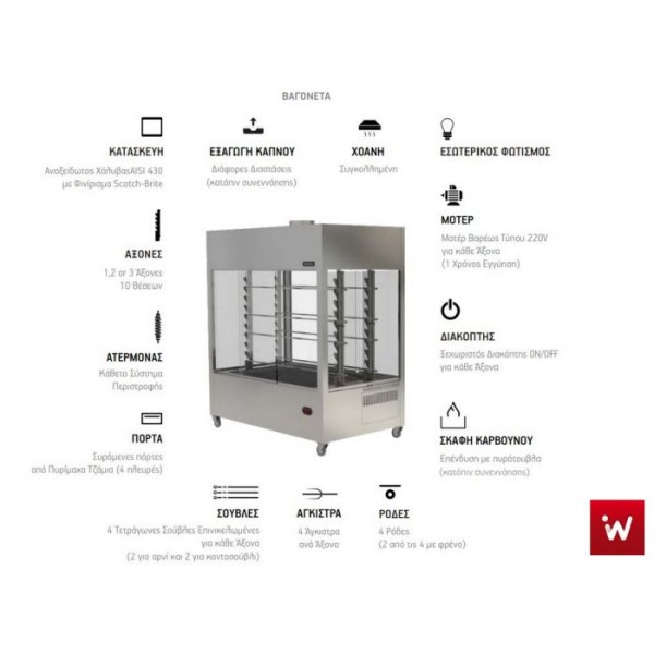 Επαγγελματική ψησταριά-σούβλα βαγονέτο με 12 σούβλες-3 ατέρμονες επιδαπέδια VKN-VAG33(aisi 304) 180χ150χ205 εκ