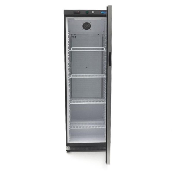 Όταν εργάζεστε με φρέσκα υλικά, είναι σημαντικό να έχετε ένα ψυγείο για να διατηρείτε τα πάντα παγωμένα για όσο το δυνατόν μεγαλύτερο χρονικό διάστημα. Αυτό το επαγγελματικό μαύρο ψυγείο έχει μικτή χωρητικότητα 400 λίτρων και είναι εξοπλισμένο με τέσσερα ρυθμιζόμενα ράφια. Αυτό σας επιτρέπει να επιλέξετε την καλύτερη διάταξη ανάλογα με τις ανάγκες σας. Προσφέρει επίσης την ευελιξία να επεκτείνετε τον αριθμό των ραφιών για πρόσθετα διαμερίσματα. Η γυάλινη πόρτα περιλαμβάνει κλειδαριά που σας επιτρέπει να βλέπετε τα ψυχόμενα προϊόντα χωρίς να ανοίγετε το ψυγείο.