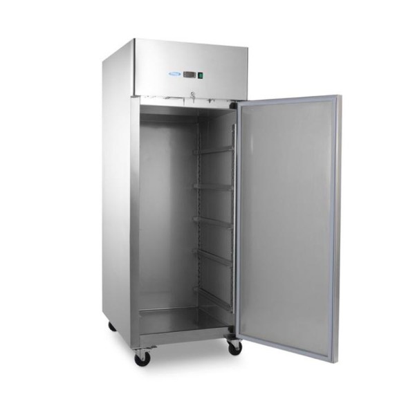 Αυτό το ισχυρό ψυγείο είναι ιδανικό για χρήση σε αρτοποιεία. Με μικτή χωρητικότητα 800L, μπορείτε να διατηρήσετε πολλά προϊόντα δροσερά. Η πόρτα είναι αυτοκλειόμενη και διαθέτει αντιβακτηριδιακή ελαστική στεγανοποίηση. Σε αυτό το ψυγείο μπορείτε να τοποθετήσετε έως και 10 ράφια ρυθμιζόμενου ύψους. Παρέχεται στάνταρ με 10 σετ οδηγών που συγκρατούν ράφια 60 x 40 cm. Υπάρχει επίσης χώρος για να διπλασιάσετε τον όγκο σε 60 x 80cm. Μπορείτε να παραγγείλετε τα ράφια ξεχωριστά στο ηλεκτρονικό κατάστημα. Αυτό το ψυγείο κλειδώνει και συνοδεύεται από δύο κλειδιά. Αν χρειαστεί να το μετακινήσετε σε άλλο σημείο του αρτοποιείου, αυτό είναι εφικτό χάρη στους τέσσερις τροχούς, δύο εκ των οποίων διαθέτουν φρένα. Είναι επίσης εύκολο να δείτε τι υπάρχει μέσα στο ψυγείο, επειδή διαθέτει οικονομικό φωτισμό LED στο εσωτερικό του.