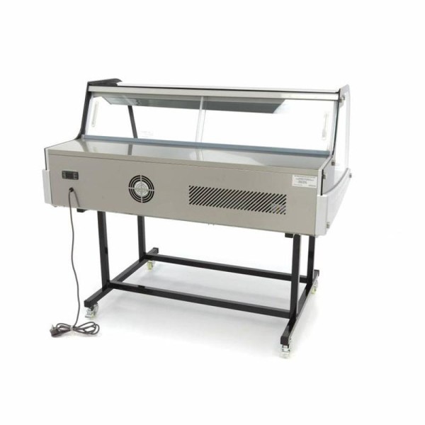 Ένα ψυγείο βιτρίνας με τροχήλατη βάση είναι μια εξαιρετική εναλλακτική λύση εάν δεν έχετε αρκετό χώρο στον πάγκο σας. Αυτό το ψυγείο βιτρίνας είναι ιδανικό εάν πρέπει να το μετακινείτε τακτικά. Το μπροστινό μέρος διαθέτει ένα κυρτό γυάλινο παράθυρο για εύκολη προβολή, ενώ το πίσω μέρος είναι εξοπλισμένο με δύο συρόμενες πόρτες, ώστε να μπορείτε να αντικαθιστάτε γρήγορα τα τρόφιμα, καθώς και να εξυπηρετείτε τους πελάτες. Με χωρητικότητα 255 λίτρων, αυτή η συσκευή μπορεί να χωρέσει τρία δοχεία Gastronorm 1/1 GN και δύο 1/4 GN με μέγιστο βάθος 15 cm. Αν προτιμάτε να κρύψετε τη βάση, μπορείτε να το κάνετε χρησιμοποιώντας ένα περιτύλιγμα που συμπληρώνει την επιχείρηση και το branding σας.