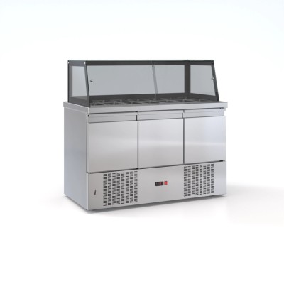 Ψυγείο σαλατών συντήρηση 3 πόρτες μηχανή κάτω 2 σειρές GN 130χ70χ126
